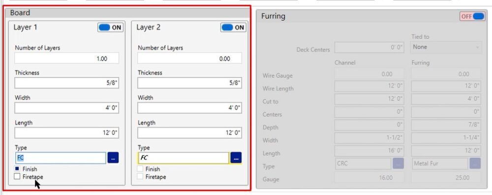 • Type – The type of board you will be working with. If you don’t need finishing or firetaping, uncheck the box.