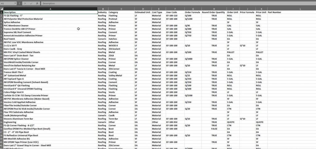 So if you wanted to update your membrane, you’ll see the item code is ROLL. If you go back and take a look at any one of the other pages here, you would be able to see that for the wall items. If we’re looking at this information, you’re going to have all of that information available to you.