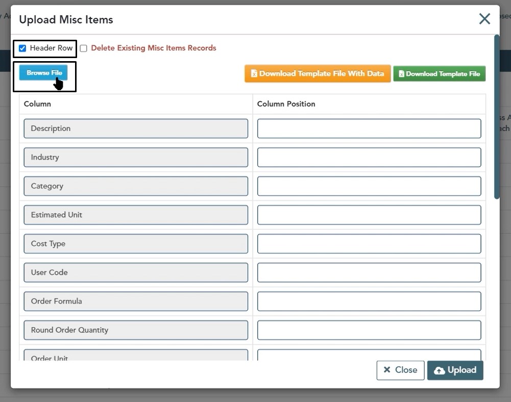Note: The delete existing miscellaneous item records means that when you check this checkbox, if the product is not on the spreadsheet that you are pushing to the database, that it will be deleted. Make sure that you only select this option if you truly want to delete all of the items that are not on the spreadsheet. Most of the time you’re not going to want to delete this.